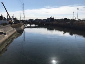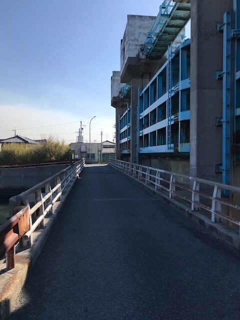 この日長水門の横の橋を渡り産業道路をトンネル