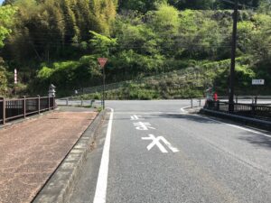 ますが、今回のコースは橋を渡り、右の狭い道
