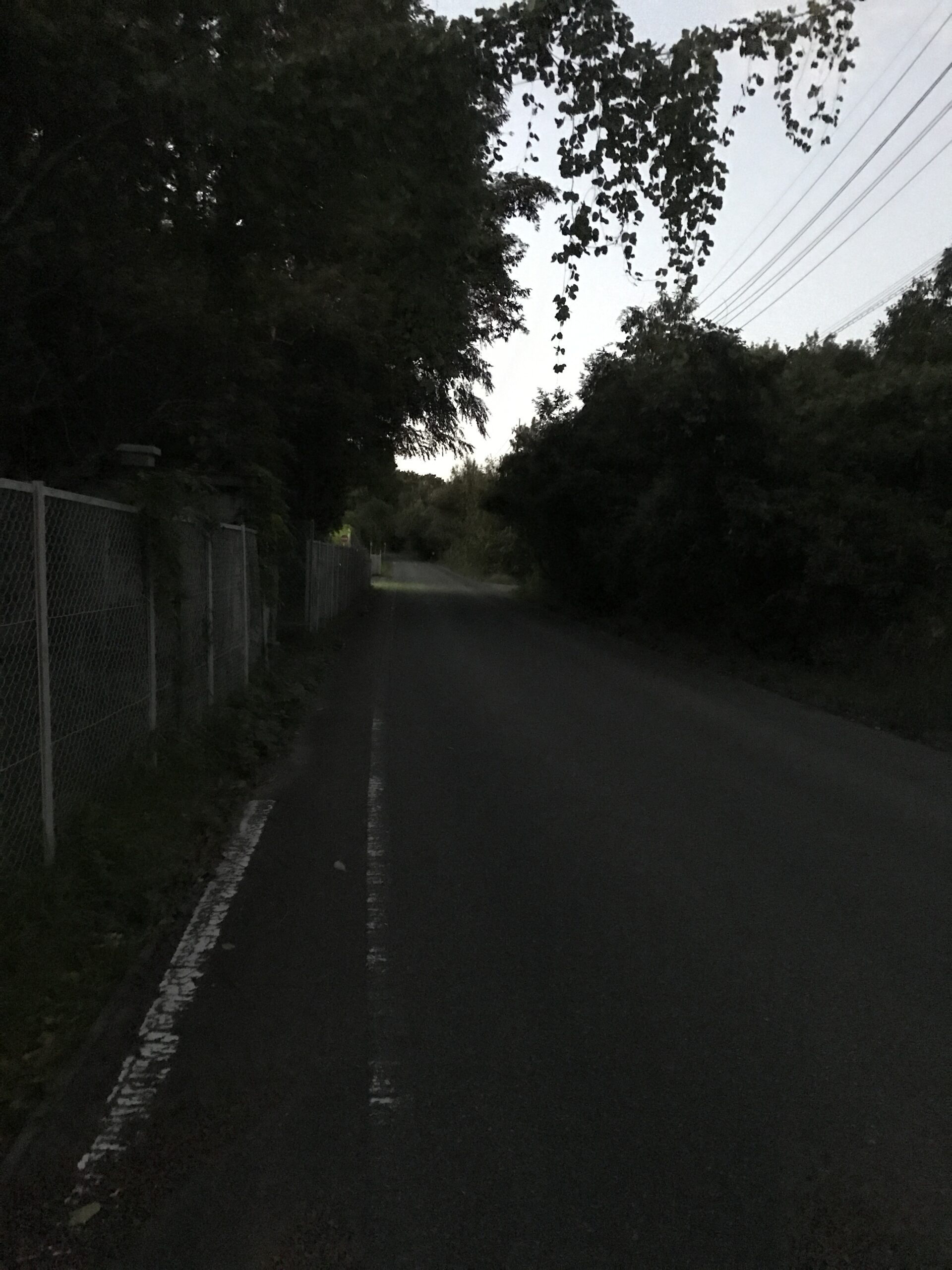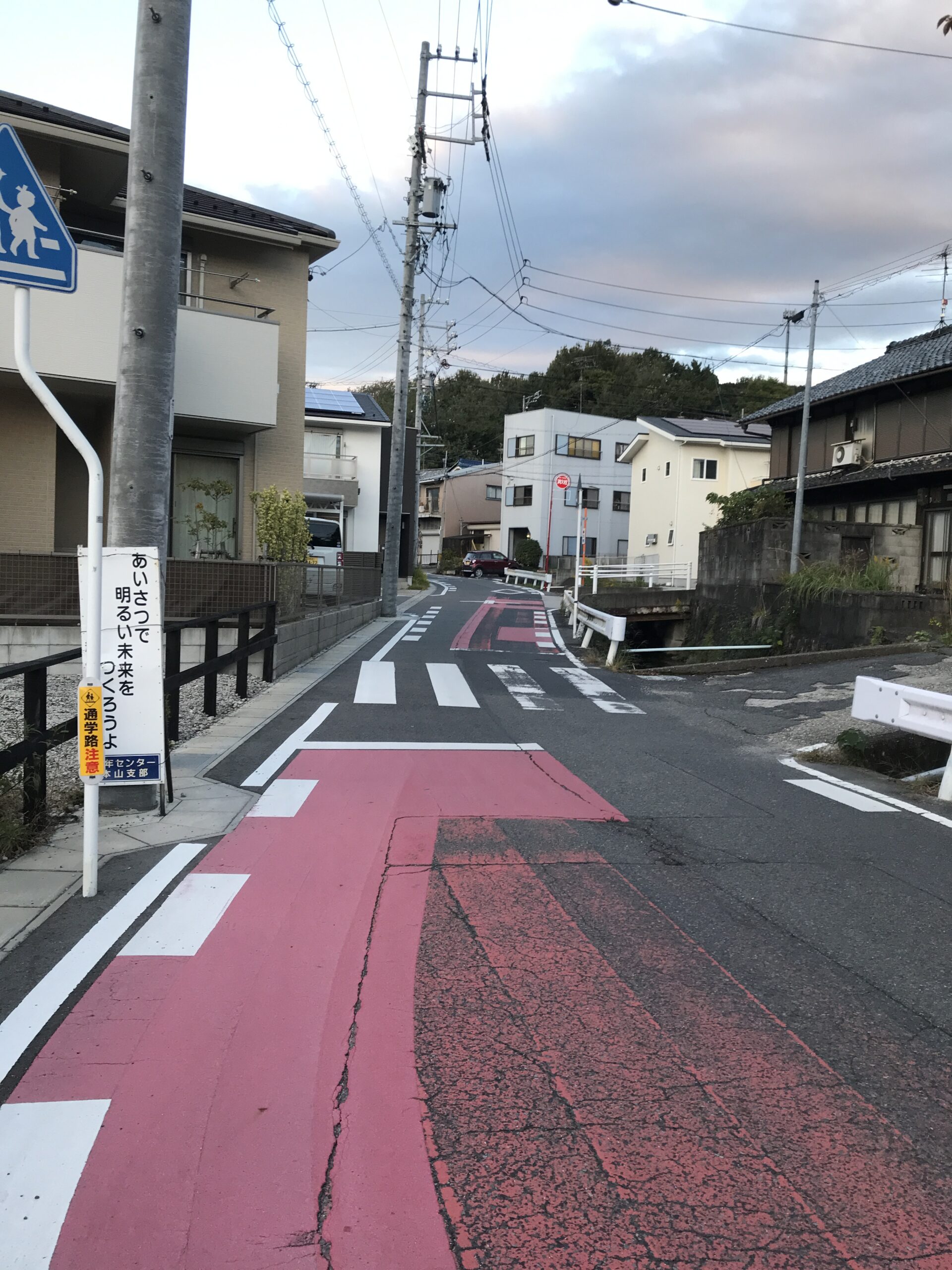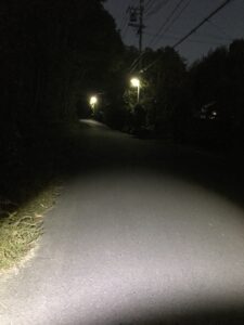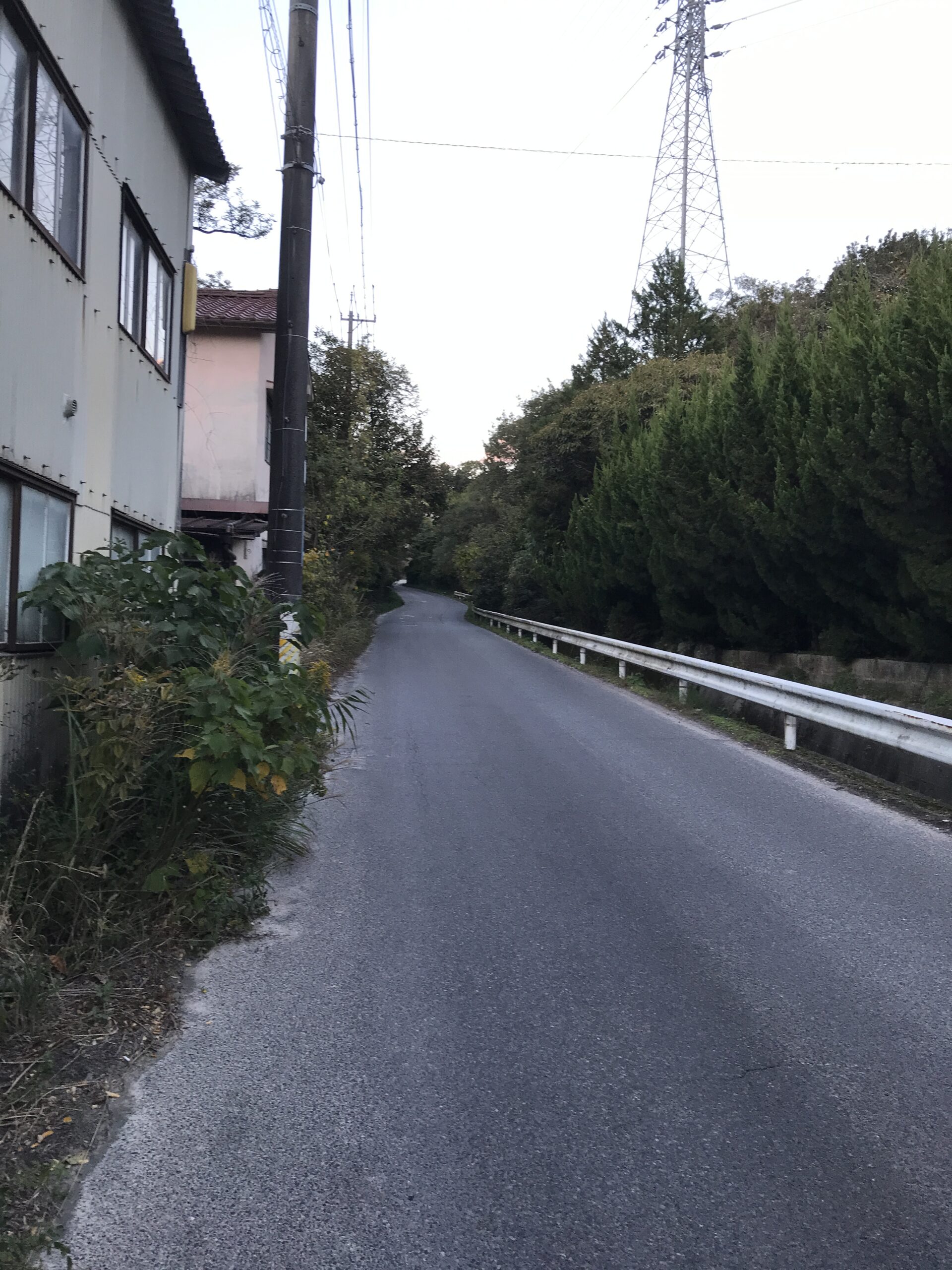 がります。細い坂道にうっすら電灯がともって