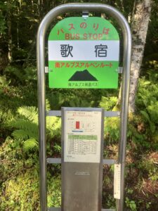 しばらく行くと、歌宿のバス停に到着。景色だ